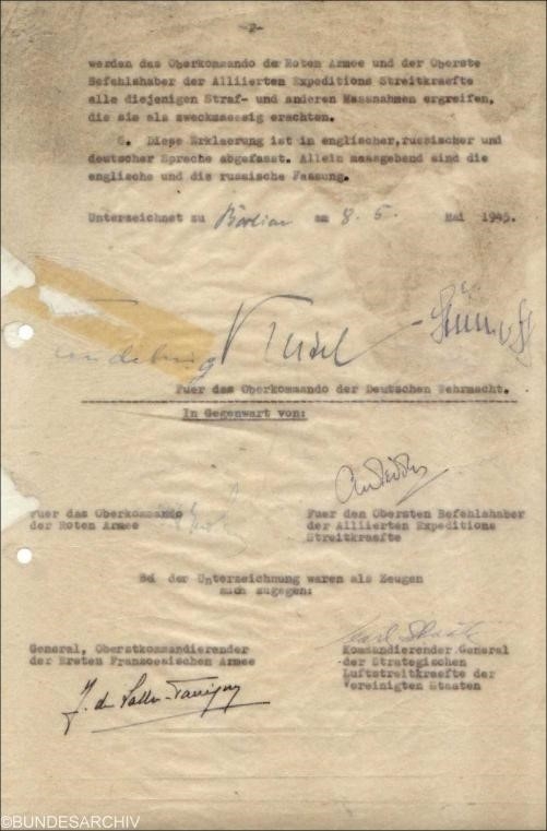 Als Zeugen unterschrieben der französische General Lattre de Tassigny sowie US-General Spaatz.